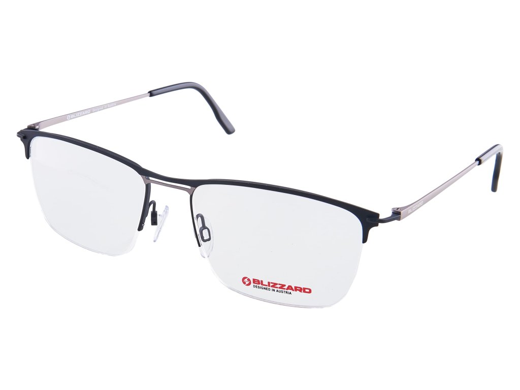 Dioptrické brýle BLIZZARD 2102 01 kombinují černý střed se stříbrnými stranicemi, čímž vytvářejí moderní a zároveň nadčasový vzhled.